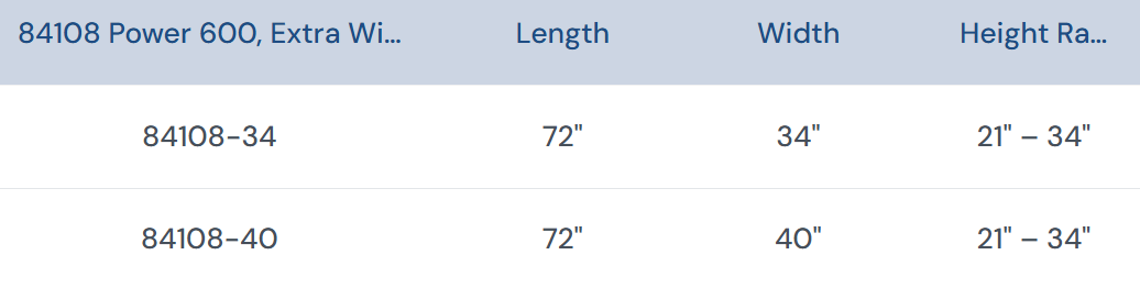 Power Table Power 600, Extra Wide, Shrouded, Straight Top, 84108-40, 72" x 40" x 21" - 34"