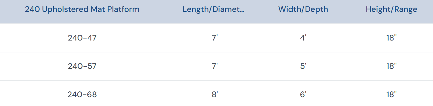 - Heavy duty, upholstered mat platform in Natural wood tone